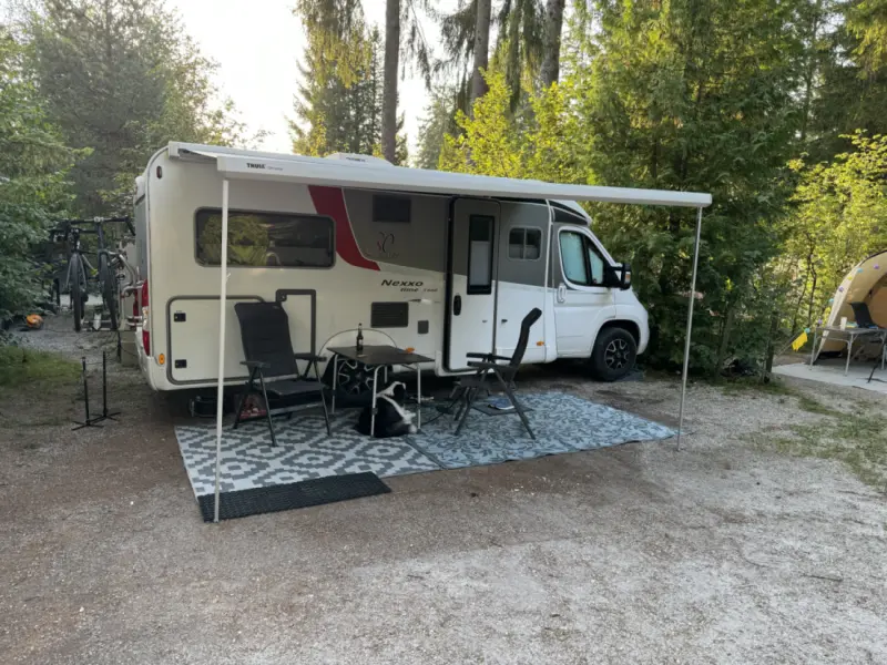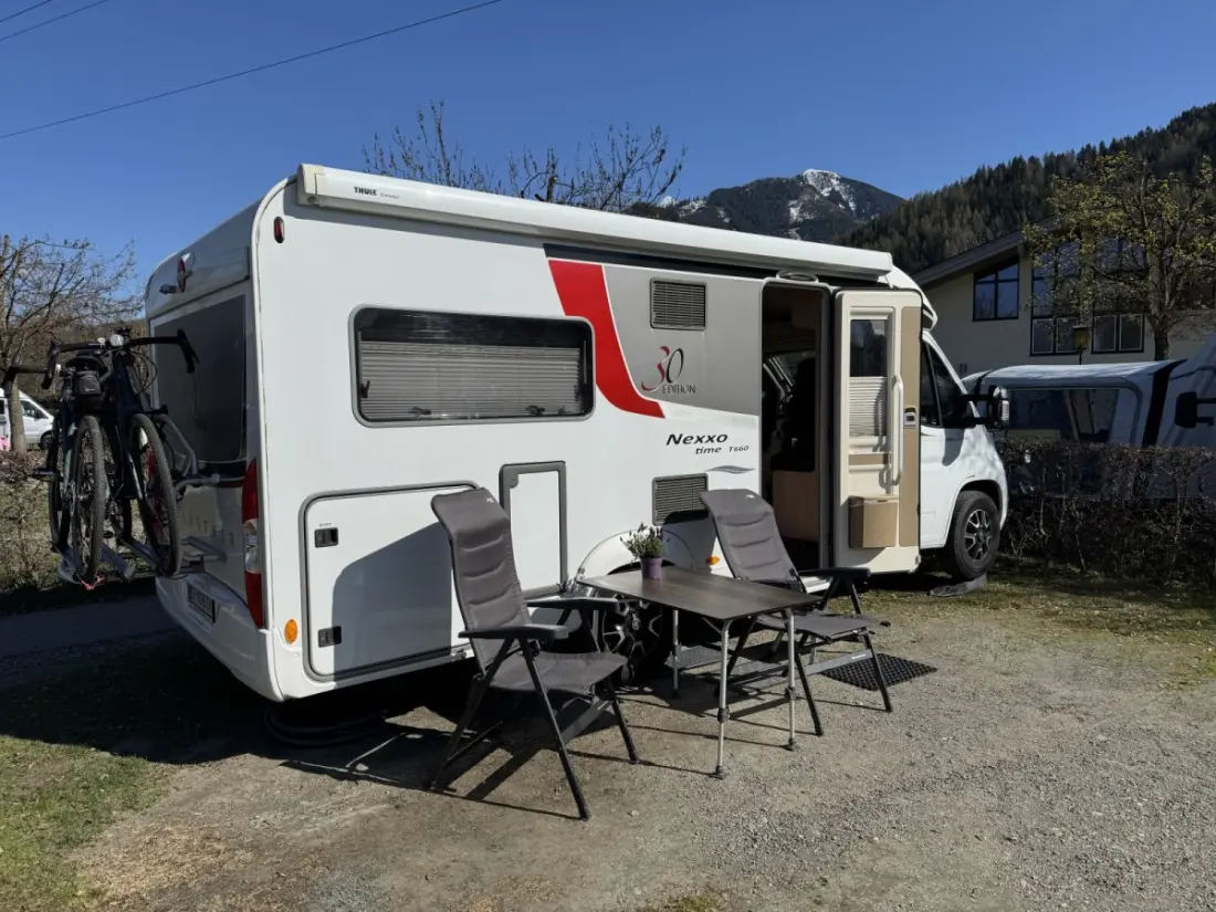 2 Campingstühle, 1 Campingtisch, Sturmgurte für Markise, Stromkabel, Auflaufkeile im Preis inbegriffen. Optionale Ausstattung: Kühlbox 12V / 230V Outdoormöbel = Outdoorregal Schneeketten für 2 Räder Gasgriller ist bereits etwas älter, aber funktioniert tadellos.