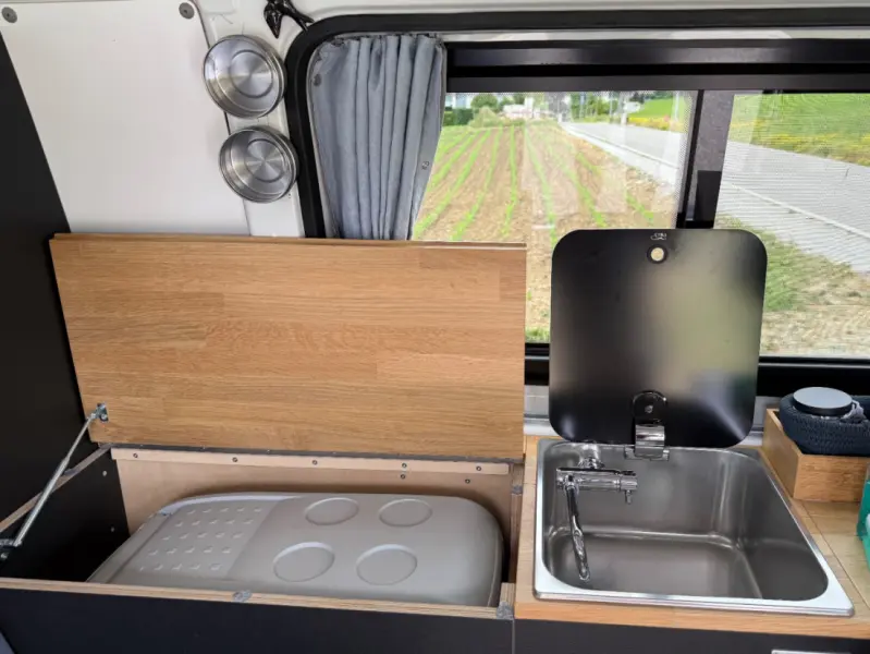Bordbatterie und Stromanschluss sowie faltbares Vordach