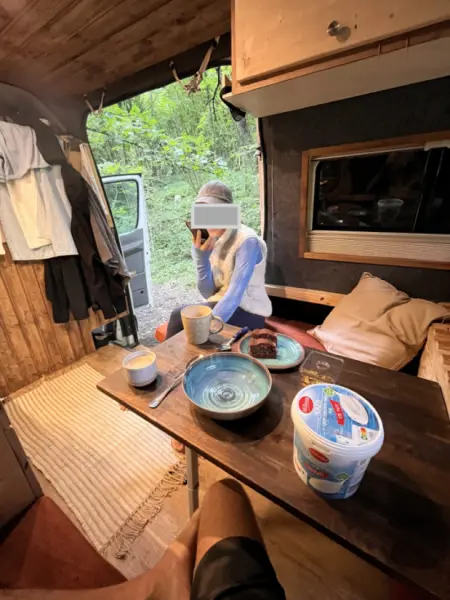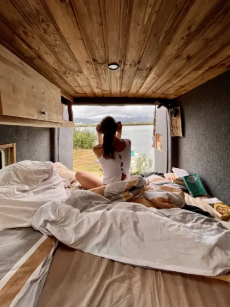 Dieser liebevoll ausgebaute Volkswagen Crafter ist mehr als nur ein Camper – er ist ein echtes Zuhause auf Rädern. Mit Naturmaterialien wie Holz, Schaffilz und Naturstoffen ausgebaut, schafft er eine warme, gemütliche Atmosphäre und sorgt gleichzeitig für ein angenehmes Raumklima, indem er Feuchtigkeit aufnimmt und reguliert. Das ausziehbare Bett (175 x 185 cm) mit einer neuen Qualitätsmatratze bietet maximalen Komfort und Flexibilität. Tagsüber kannst du den Tisch ausklappen und das Bett als kleine Couch nutzen. Wenn du das Bett über den Tisch ausziehst, entsteht eine großzügige Sitzfläche zum Frühstücken, Arbeiten oder einfach Entspannen. Dank Standheizung und einer sehr akribisch gemachten Isolierung ist der Van absolut wintertauglich – mehrfach erprobt bei -20°C! Der Heckantrieb macht ihn nicht nur sparsam, sondern auch kraftvoll und zuverlässig in jedem Gelände. Und das Highlight? Die Dachterrasse! Perfekt, um Sonnenuntergänge zu genießen oder nachts die Sterne zu beobachten. Küche: Doppelgasherd, Marrokanische Spüle mit 80l Frischwassertank, viel Stauraum, Bialletti ;)