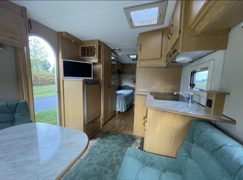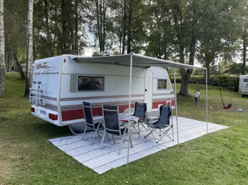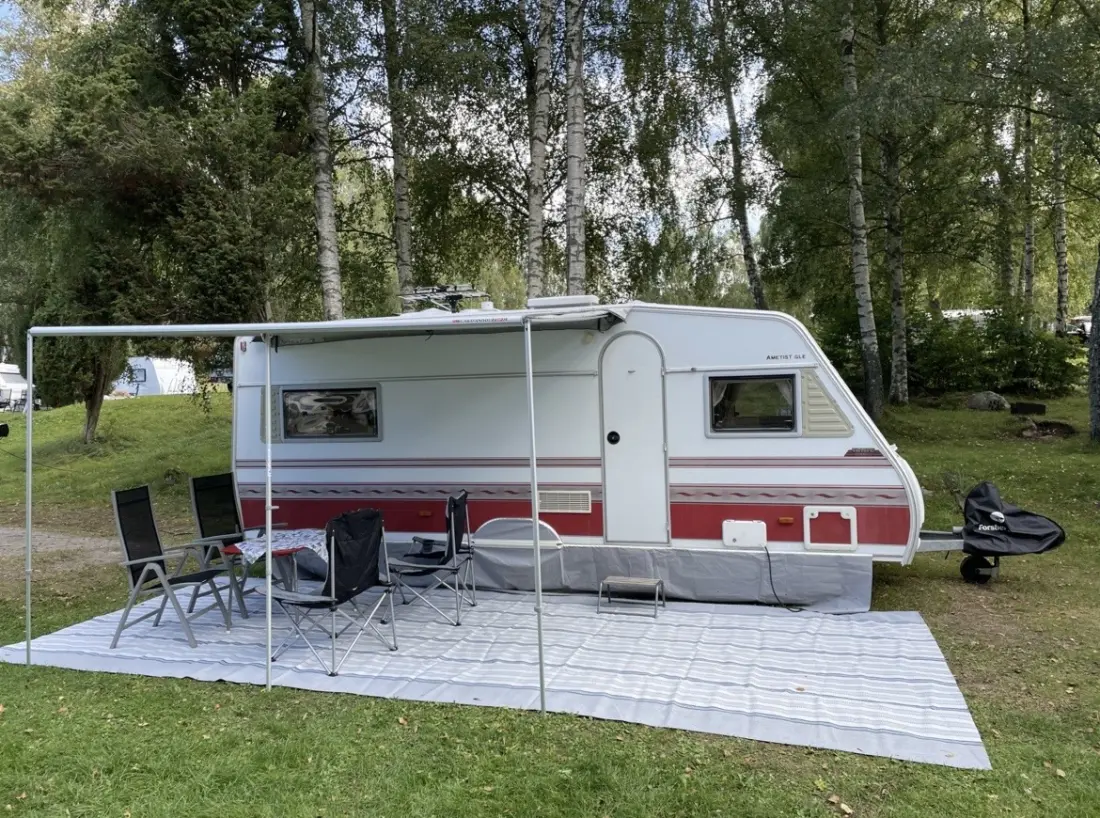 Originaltext anzeigenSuchen Sie ein komfortables, gemütliches und komplett ausgestattetes Ferienhaus auf Rädern? Dann sind Sie hier genau richtig! Unser schöner KABE Ametist GLE ist perfekt für alle, die die Freiheit der Straße genießen möchten, ohne auf Komfort zu verzichten. Hier finden Sie alles, was Sie für ein unvergessliches Erlebnis benötigen – egal ob Sie mit Ihrer Familie oder Ihrem Partner reisen. Hier finden Sie nicht nur Komfort und Funktionalität, sondern auch jede Menge Spaß für die Kinder. Komfortabel und entspannt reisen. Der Wohnwagen ist für 4 Personen mit zwei langen Betten und einem Schlafsofa ausgestattet. Bettdecken und Kissen sind vorhanden – Sie brauchen nur Ihre eigene Bettwäsche mitzubringen. Fußbodenheizung, Warmwasser und ein Fernseher sorgen dafür, dass Sie es auch bei wechselhaftem Wetter warm und gemütlich haben. Essen und Verpflegung. Die Küche ist komplett ausgestattet mit Kaffeemaschine, Wasserkocher, Toaster und Küchenutensilien. Draußen finden Sie ein Vorzelt mit Isomatte sowie einen Campingtisch mit Stühlen und einen Holzkohlegrill – perfekt für gemütliche Grillabende unter freiem Himmel. Den ganzen Tag spielen und lachen! Wir haben den Wagen mit lustigen Spielen und Spielzeugen für draußen beladen, die für kleine und große Kinder gleichermaßen geeignet sind. Wie wäre es mit: • Boccia und Kubb für die ganze Familie • Badminton und Fußball für rasante Momente • Sackwerfen – einfach, lustig und unterhaltsam • Familienspiele für gemütliche Abende im Wohnwagen Gut ausgestattete Küche & Essbereich • Kühlschrank mit Gefrierfach • Kaffeemaschine, Wasserkocher, Toaster • Gläser, Tassen, Teller, Schüsseln, Besteck, Bratpfanne, Topf und mehr – alles, was Sie für Frühstück, Mittagessen, Kaffee und Abendessen brauchen • Campingtisch + 4 Stühle für Mahlzeiten im Freien • Holzkohlegrill (Holzkohle und Anzündflüssigkeit mitbringen) Freizeit & Unterhaltung • Fernseher und Familienspiele • Markise und Zeltmatte für schöne Tage im Freien • Fahrradträger für Ihre Abenteuer auf zwei Rädern Technische Informationen • Nur Stromanschluss (Kein LPG. Wildcampen nicht möglich) • Kassettentoilette (Muss vor der Rückgabe geleert werden) • Autospiegel inklusive • Gesamtlänge: 7,3 m Breite: 2,3 m • Nutzgewicht: 1300 kg | Gesamtgewicht: 1420 kg Gut zu wissen: • Der Wohnwagen ist vollkaskoversichert – der Mieter haftet für die Selbstbeteiligung. • Vermietung an Festivalbesucher nicht gestattet. • Rauchen im Wohnwagen verboten. • Kaution: 500 SEK (bei Abholung zu zahlen und bei Rückgabe im gleichen Zustand zurückzuerhalten). • Der Wohnwagen muss gereinigt und leer zurückgegeben werden – andernfalls wird die Kaution einbehalten. Die vollständigen Reinigungsregeln befinden sich im Wohnwagen. • Bei Abholung wird ein Vertrag unterzeichnet, und wir besprechen alles in Ruhe mit Ihnen. Bei Reisen außerhalb Schwedens informieren Sie uns bitte im Voraus (die Versicherung gilt nur für bestimmte Länder). • Abholung und Rückgabe erfolgen nach Vereinbarung – wir sind flexibel und helfen Ihnen gerne bei einer reibungslosen Anreise. Mieten Sie einen sicheren, sauberen und komfortablen Wohnwagen für Ihre nächste Reise! Kontaktieren Sie uns für Buchungen oder bei Fragen – wir freuen uns darauf, Ihnen zu unvergesslichen Urlaubserinnerungen zu verhelfen.