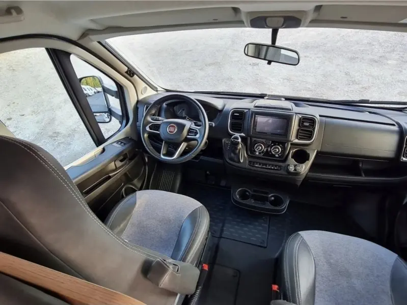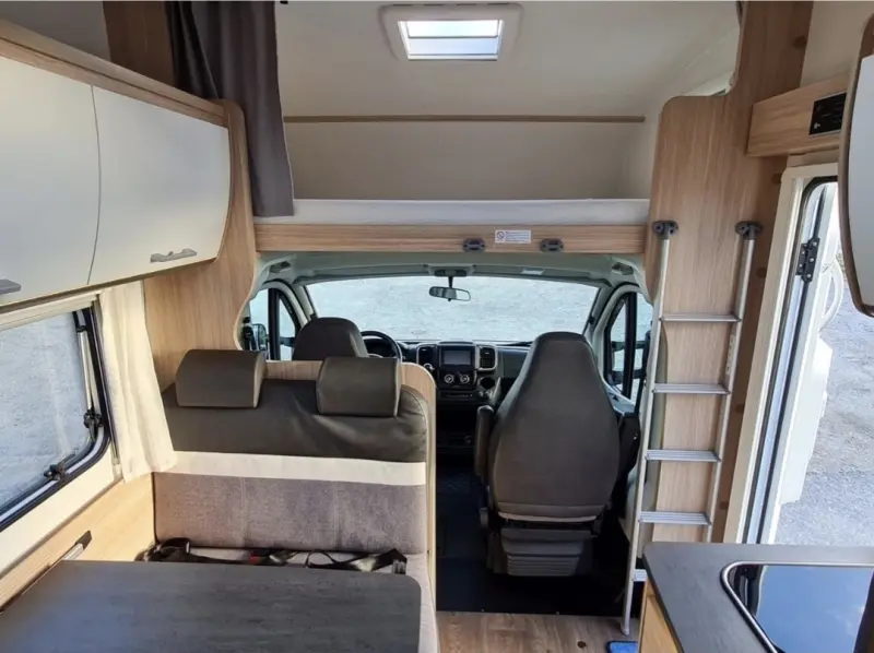 Originaltext anzeigen160 cm breites Bett im Heck. Kleine Leiter zum Hochfahren. Auf Wunsch mit Sicherheitsnetz. Schlafnische, 160 cm breit. Leiter zum Hochfahren. Sicherheitsnetz an beiden Seiten. Alternativ: Absturzsicherung. Die Sitze in der Mitte lassen sich zu einem zusätzlichen Bett für zwei Personen umklappen. Sechs Sitze mit Gurten, zwei davon mit Beckengurt. Diese beiden Sitze werden mit dem Rücken nach hinten transportiert.