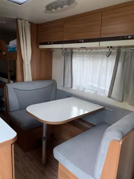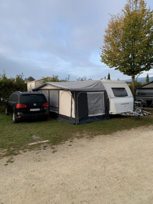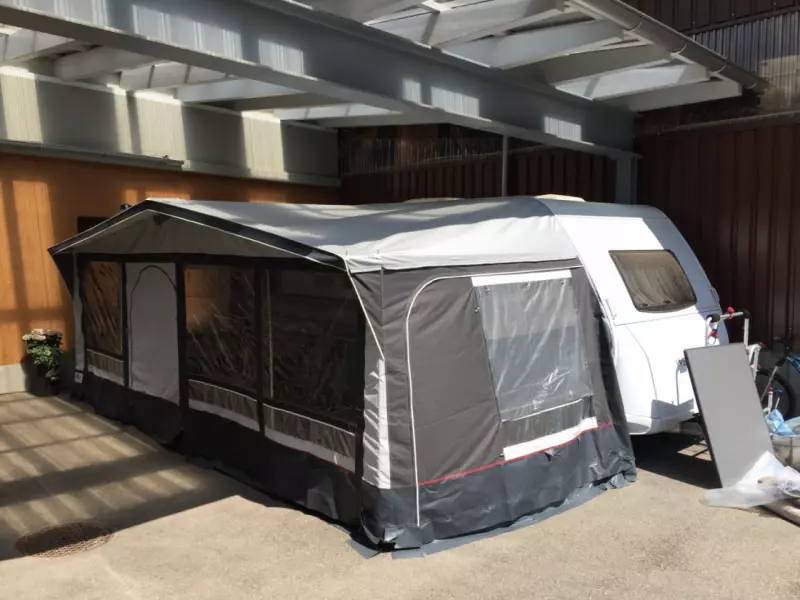 Alles für die Familie! Doppelbett, dreier- Stockbett und zusätzliches Bett aus Sitzgarnitur. Geschlossenes Vorzelt in Wohnwagengrösse, Seitenteile können auch weggelassen werden. Frischwassertank mit Heisswasser, Bad mit Toilette und separater Dusche, Bodenheizung über Stromanschluss, Heizgebläse mit Gas, Kühlschrank mit Gefrierfach, dreier Kochrechaud, Kochgarnitur für Aussenzelt mit sämtlichem Zubehör Geschirr, Besteck, Pfannen, 2 Klapptische mit insgesamt 6 Stühlen, Fahrradträger für zwei Velos