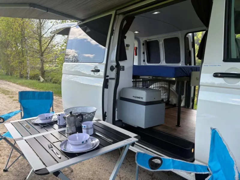Eignet sich hervorragend für jegliche Art von Urlaub. Auch mit Veloträger auf der Anhängekupplung. Es ist eine Zusatzbatterie eingebaut für die Kühlbox und die LED Lampen im Innenraum. Ebenso für USB Ladeanschlüsse für Natel oder Laptop. Auf dem Campingplatz oder wenn sonst vorhanden hat der Bus einen Stromanschluss auf der Aussenseite, welcher beide Batterien mit dem integrierten Ladegerät wieder automatisch lädt. Es ist ein Solarpanel auf dem Dach, welches die Lithium Aufbaubatterie Batterien bei Sonneneinstrahlung lädt. Getönte Scheiben hinten sorgen für Sicherheit. In der Hauptsaison ist das Fahrzeug jeweils von Freitag bis Freitag buchbar. Kürzere oder Buchungen oder an anderen Tagen sind auf anfragen möglich. Kostenpflichtiges Zubehör muss angewählt werden, damit die Optionen bei der Miete dabei sind. Das Fahrzeug kann durch Absprache mit uns auch früher oder später abgeholt werden. Für Fragen stehe wir gerne zur Verfügung.