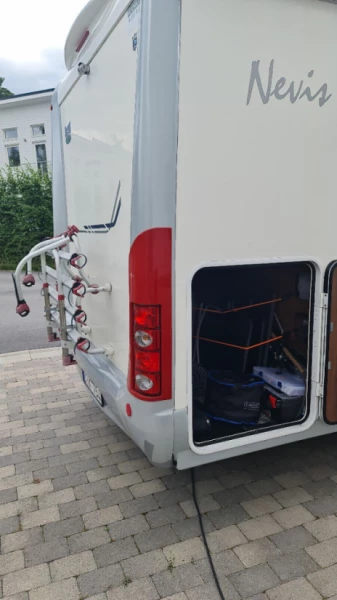 Originaltext anzeigenEs gibt einen Turbo-Vent-Ventilator, der bei großer Sommerhitze zum Einsatz kommt. Er bläst kühlere Luft hinein oder leitet die Abluft bei Bedarf ab. Außerdem steht ein Elektromoped (Fat Badboy, 3000 W) inklusive zwei Helmen zur Miete bereit. Die Kosten betragen 275 SEK pro Tag und sind separat zu entrichten. Das Moped kann aus der Garage geholt und für Fahrten auf Campingplätzen montiert werden. Achtung! Das Moped darf nicht auf öffentlichen Straßen gefahren werden, da es nicht für den Straßenverkehr zugelassen ist. Auf Privatgelände und Campingplätzen ist es jedoch sehr praktisch. (Falls das Moped mit auf die Reise genommen werden soll, montieren wir Tische und Stühle auf dem Fahrradträger im Kofferraum, um Platz für das Moped in der Garage zu schaffen.)