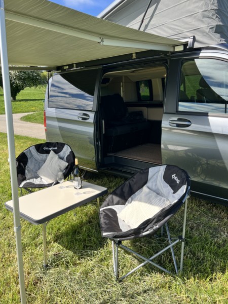 Tisch & Stühle sowie Geschirr, Kochutensilien und Fahrzeugaustattung f. 2 Personen und einen Grill für die Gasflasche sowie bei Bedarf ein SUP & Fahrradträger. Decke/Schlafsack & Kissen bitte selbst mitbringen! Ein Spannbettlacken gibts dazu.