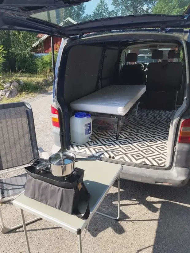 Mit Google-Übersetzer übersetzenBaklåset krånglar men det går att låsa inifrån. AC fungerar inte. Det finns simpel gasspis med det enklaste i köksutrustning. Jag kan tänka mig att den skulle passa väl för fiskeresor exempelvis.