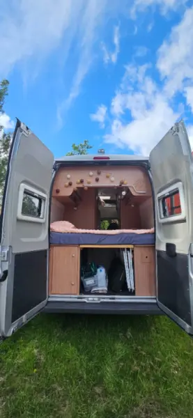 Mit Google-Übersetzer übersetzenGediget bord som kan fällas ut ytterligare Cykelställ för två cyklar Tre spisplattor 100 liter tank för färskvatten + vattendunk Luftburen trumavärme vid kalla nätter/dagar 1700 W inverter för att få 230 V att driva hushållsmaskiner eller ladda dator/mobil (dvs det går att ladda utan att behöva ta in på camping eller köra bilen) Extra lås finns installerade på insidan av plåtisen på samtliga dörrar.