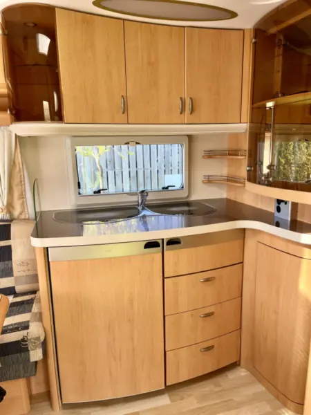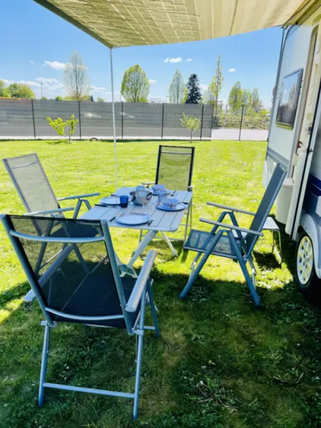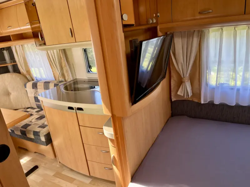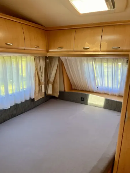 Voll ausgestattet mit: Einem MAXXFAN/MAXXAIR, einer Markise mit einer Seitenwand, eine elektrische Rangierhilfe (Mover), ein Fahrradträger für zwei Fahrräder; ein Camping-Tisch mit 4 Stühlen und Camping-Geschirr wie Teller, Tassen, Besteck, Gläser, kl.Messer, Schneidebrett, Schäler, kl.Wasserkocher, Knoblauchpresse, Suppenkelle, Pfannenwender, Töpfe, Pfanne…Eine kleine Wasserwaage, Auffahrkeile, ein Tritt, eine 11 L Gasflasche mit mindestens 2/3 Füllung, WC-Chemie, WC, Herd, Heizung, ein Eimer, ein kl.Kehrwisch mit Schaufel, wasserfeste Unterlagen mit Spannbettlacken auf den gewünschten Schlafplätzen.. …usw.. Es gibt 4 Schlafplätze. Die Fenster sind alle mit Verdunkelungsrollos und Fliegenschutz ausgestattet… Bei Wunsch sind universelle Spiegel für 15€ pro Buchung und eine Split-Klimaanlage für 6€/pro Tag zubuchbar. Nicht Rauchen im Wohnwagen. Der Wohnwagen hat eine 100km/h Zulassung. Das zulässige Gesamtgewicht beträgt 1300. Haustiere sind leider nicht gestattet! Die Mindest-Mietdauer beträgt 5-7 Tage.