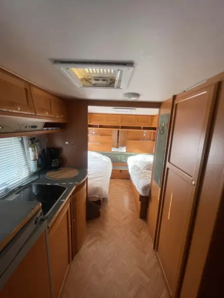 Mit Google-Übersetzer übersetzenEn fräsch och hemtrevlig husvagn med smart planlösning och gott om förvaring. Perfekt för familjen eller paret som vill ha en bekväm semester med friheten att åka vart ni vill. Husvagnen erbjuder: • Två separata enkelsängar baktill • Stor sittgrupp fram som enkelt bäddas om till rymlig dubbelsäng • Fullt utrustat kök med spis, diskho, kyl och kaffebryggare • Toalett med duschmöjlighet • Generöst med förvaring i överskåp och garderober • Ljus och trivsam interiör med stora fönster En smidig och lättkörd vagn som passar lika bra för campingplats som för spontana roadtrips. Hör av dig vid intresse eller frågor