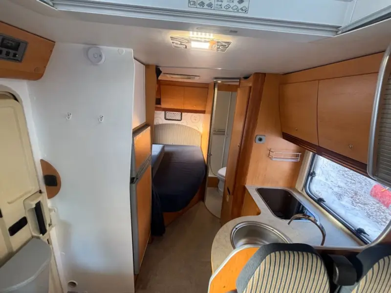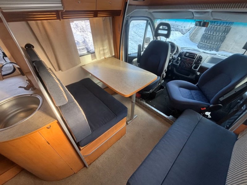 Mit Google-Übersetzer übersetzenGasolspis Fransk säng Kassettoalett Separat Dusch Garderob Bodelsmatta Kylskåp Solcell Radio/CD Cykelhållare Markis Elektriskt Fotsteg Cruise control Klimatanläggning förardel Aluminiumfälgar 2.8 l motor 128 HK 2 st USB uttag i bodel och flera 12v samt 230v för att ladda mobiler mm. Allt till köket finns med. Går att bädda soffgrupp för att sova 4 stycken i bilen.
