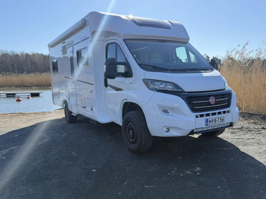 Mit Google-Übersetzer übersetzenHuippu pohjaratkaisulla oleva auto, tässä on mukava myös istuskella ja viettää aikaa, mukavan ja järkevän sohvaryhmän ansiosta. Hydrauli tukijalat, napista auto vaateriin, ei kiilojen kanssa pelleilyä! All Terrain renkaat pitää vähän huonommallakin alustalla. Kaasun ulosotto auton kyljessä grillille, ei kaasupullojen kanssa säätämistä! Aurinkopaneelit pitää akut ladattuina parkissa. Tavaratila suuri takasängyn alla, pääsy ulkoa kyljestä ja sisältä. 2 pyörän teline. Autossa vetokoukku. Markiisi, vetokoukku, sähköinen askelma jne jne..