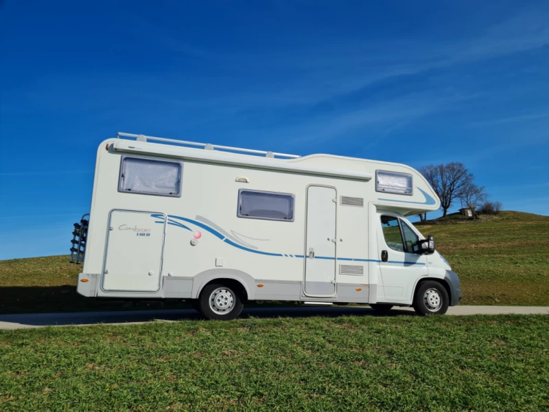 Gut ausgestattetes Wohnmobil mit 6 Reise und Schlafplätzen. Grosser Kühlschrank mit Gefrierfach, grosse Heckgarage beidseitig zugänglich, Klimaanlage im Wohnraum für angenehmes Raumklima auch in heissen Regionen, 4facher Fahrradträger, das Wohnmobil ist komplett ausgestattet für Familienferien. Sie bringen noch Decke und Kissen, sowie persönliche Sachen mit und los kann es gehen. Ihr Auto kann bei uns während der Mietdauer parkiert werden.