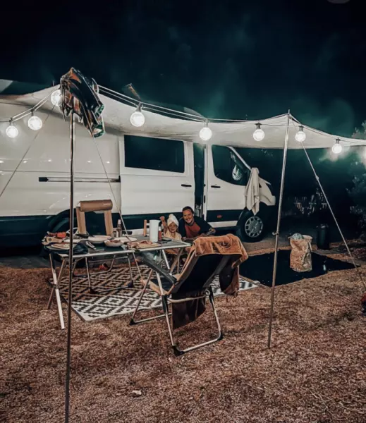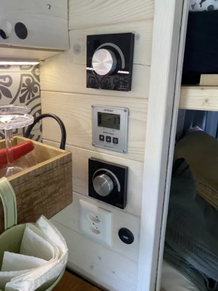 Vi har et 300-watt solcelleanlæg og et 200-ampere lithiumbatteri, så du kan være off-grid i et par dage.