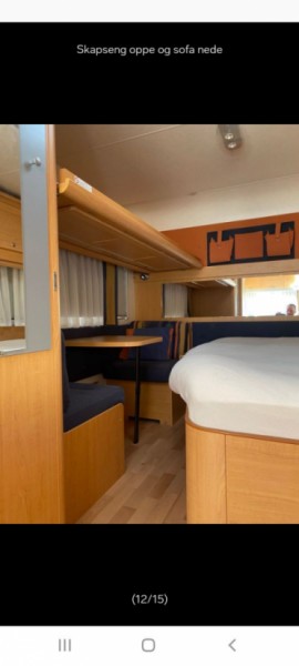 Oversæt med Google TranslateCampingvogn ledig for utleie: Det er stor hjørnesofa fremme i vognen. Kjøkken og bad i midten. Bak er det dobbelseng og sofa som kan gjøres om til enkeltseng samt to skapsenger. Me har brukt bakre sofa til seng som minstemann har lagt i. Det er raskt og gjør om til sofa igjen. Vognen har totalvekt 1600kg og egenvekt 1353kg. Den ligger stabilt bak bilen. Kjekk og god kjørevogn som trekkes på førerkort klasse B. 6 sengeplasser. Leies ut til ordensfolk over 25 år, ikke til festivalbruk. Røyk og husdyr ikke tillat. Campingvogna har 2 sittegrupper med nedfellbare bord som gjøres om til senger. nedfellbar køyeseng med maks kilo på 50kg. Rikelig med skapplass. i midtre del vogna er det kjøleskap, kokeplate med 3 gassbrennere, oppvaskkum, romslige skuffer og skap, bad med toalett og vask.