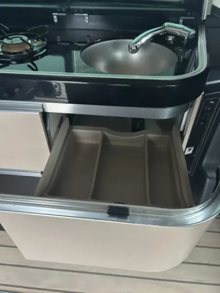 Se originaltekstBærbar kraftstation | 1.800W 1.024Wh kan lejes separat, da mycamper ikke har den mulighed endnu.