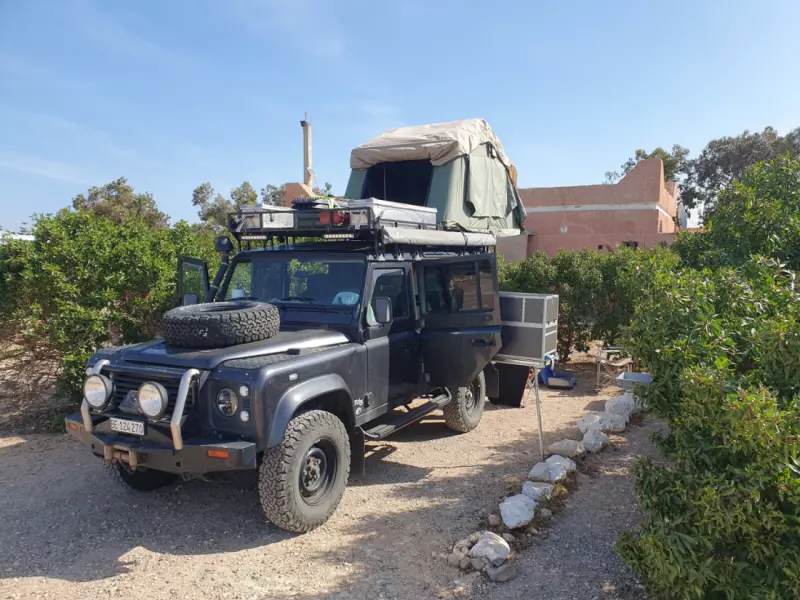 Visa originaltextÄr du redo för din oförglömliga resa med denna terränglegend? Denna Land Rover har redan upplevt otaliga äventyr, kört många mil i alla riktningar och ser fram emot varje ny resa. Oavsett om det är sand eller snö, nära eller långt borta, är Defender pålitlig och kommer att fortsätta där andra sedan länge har gett upp! ;-) Det enorma taktältet är snabbt att sätta upp och mycket bekvämt för två långa personer. Det utdragbara köket och de många förvaringsfacken erbjuder gott om plats för utrustning för längre resor. Tack vare kylskåpet och den inbyggda färskvattentanken kan du enkelt njuta av några nätter långt från civilisationen. Om det blir kallt ger extravärmaren behaglig värme, även i taktältet om det behövs! Som det anstår ett expeditionsfordon finns all nödvändig nödutrustning tillgänglig för varje resa (första hjälpen-kit, reservdäck, två 20-liters jerrycans, sandstegar, terrängdomkraft, vinsch, reservdelar etc.). Kontakta oss gärna om du har några frågor. Annars kan vi förklara och diskutera allt annat vid överlämningen. Jag svarar också gärna på frågor, ger tips och hjälper till med allt annat under resan för att säkerställa att den blir så bekymmersfri som möjligt!