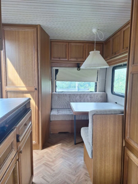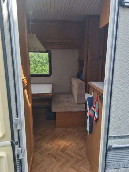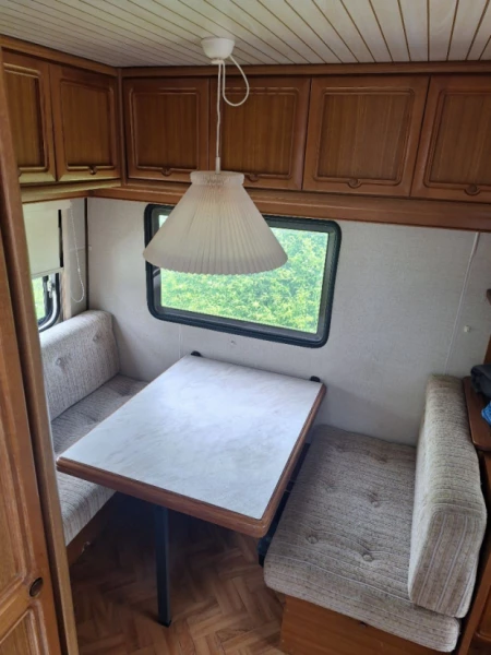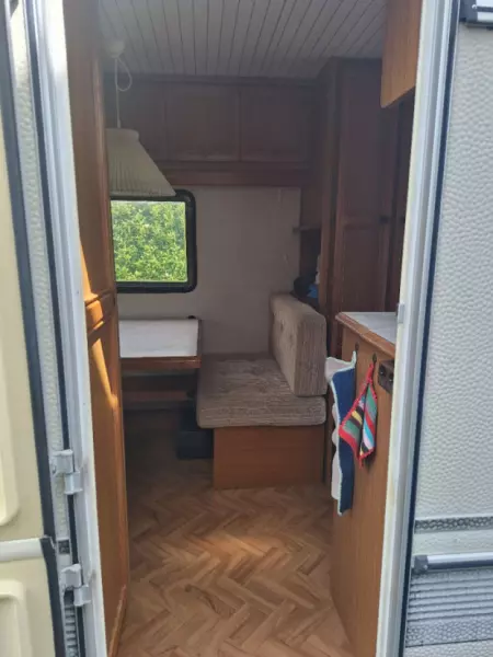 Visa originaltextObservera att detta är en äldre husvagn. Markisen behöver monteras försiktigt :) En säng mäter ca 190x130 och den andra mäter ca 185x80.