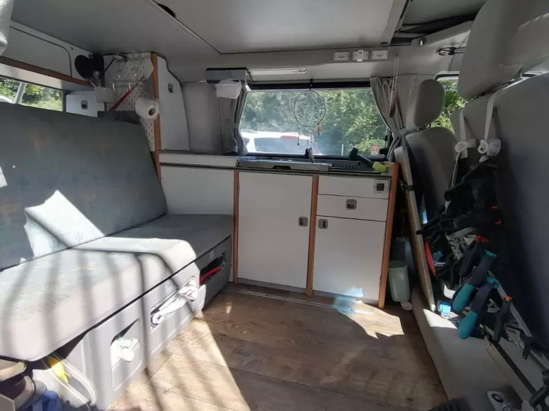 Översätt med Google TranslateDie Ausstattung ist für 2 Personen Schlafboard (Bettverlängerung Dachbett) Auszugschublade Heck Teller, Schälchen, Tassen, Besteck, Gläser für 2 Personen vorhanden Im Camper hat es einen Tisch für Innenraum 2 Campingstühle und Tisch vorhanden Fixleintuch für oberes Bett vorhanden