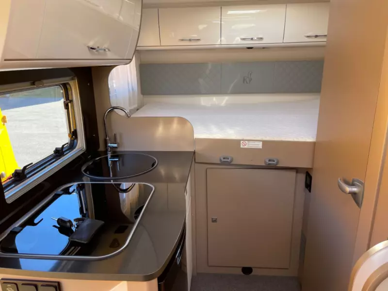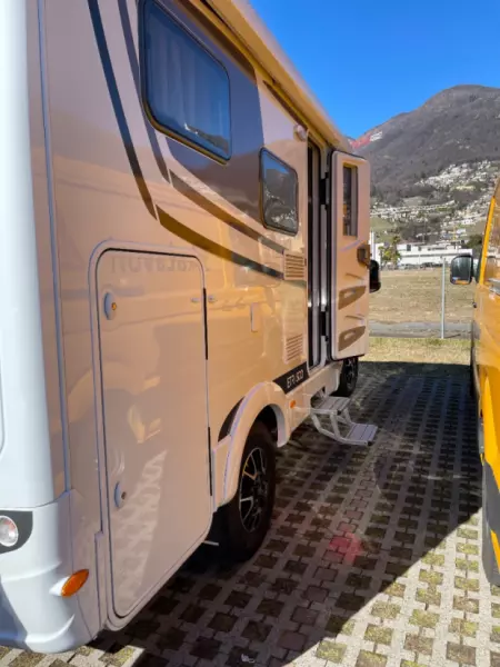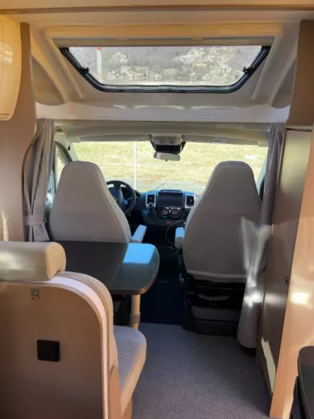 Visa originaltextMin Etrusco är väldigt lättkörd. Med sin 9-växlade automatlåda kör den som en dröm. Längden på 5,95 meter gör att du kan parkera och övernatta på vanliga parkeringsplatser. Färjor och andra betalstationer tar också ut avgiften för fordon under 6 meter. Interiören är funktionell och allt du behöver finns tillgängligt. Hyran inkluderar två elminicyklar, som du kan förvara i garaget utan bagagehylla.