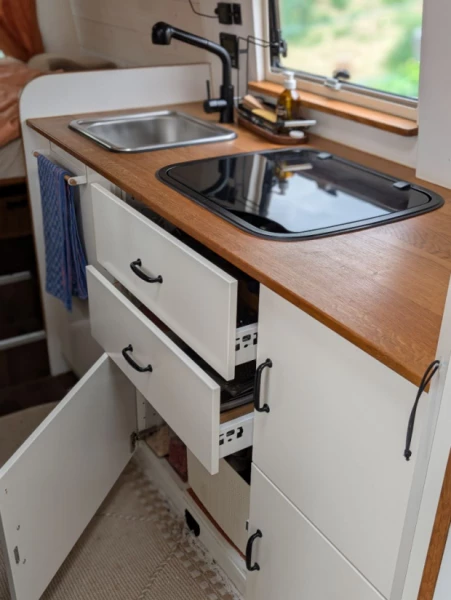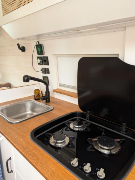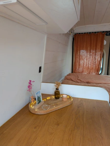 Visa originaltextVår husbil byggdes av oss och har varit vårt hem i tre år, så vi vill att den ska behandlas med största omsorg. Mycket kärlek och hårt arbete har lagts ner på den. Sängen kan också omvandlas till en sittgrupp. Den mäter 180 x 140 cm, och vi sover tvärs över fordonet. Innerhöjden är 190 cm. Fordonet är utrustat med året-runt- och terrängdäck. Vid punktering har det en reparationssats och en kompressor. Om du lägger till vägassistans behöver du inte oroa dig för det.