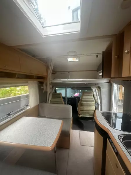 Översätt med Google TranslateTällä ihanalla, paljon reissussa olleella ja hyvin huolletulla asuntoautolla teet unelmamatkasi niin kesällä kuin viellä viilenevissä syysilloissa. Tänne mahtuu hyvin, niin 5-6 henkinen perhe kuin pariskunta. Nautit ulkoilmasta markiisin alla kuin sisätiloista joissa kokkaat ja katsot telkkaria vaikka sataisi. Hyvää matkaa!