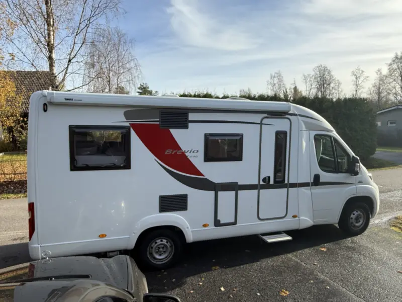 Översätt med Google TranslateSympaattinen ja monikäyttöinen Brevio. Poikkeuksellinen takaosan ratkaisu, jossa on suuri ylös aukeava takaovi, mahdollistaa tilan käytön käyttäjän tarpeen mukaan. Tilaa voi käyttää oleskeluryhmänä, harrastevälineiden kuljettamiseen tai sänkynä. Autossa on täysnahkaverhoilu, harmaavesisäiliön ja veden lämmitys sekä sähköpatruuna.