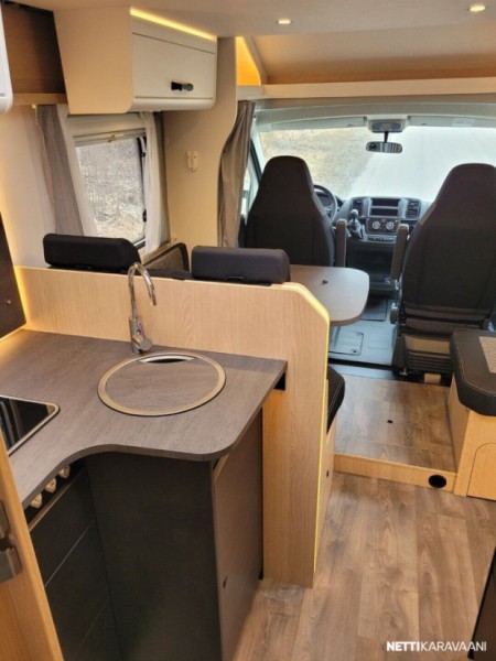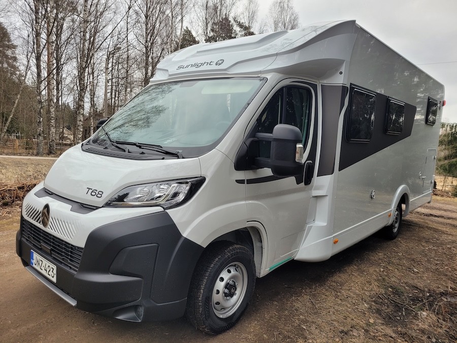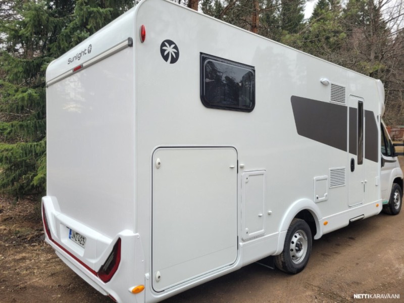 Översätt med Google TranslateSunlight T 68 on hyvä valinta kahdelle tai pienelle perheelle. Autossa turvavyöt neljälle (2 isofix paikkaa) ja makuupaikkoja takana 2-3 ja edessä alas vedettävä vuode kahdelle. Lämmitys toimii kaasulla. Auton takaosassa iso tavaratila jonne mahtuu paljon urheiluvälineitä tai tavaraa jota lomalla tarvitsee. Erilliset suihku ja wc ja takaosan tilan saa eristettyä ovella joka takaa yksityisyyden jos sitä tarvitsee. Teline polkupyörille takana. B-luokan ajokortti riittää.