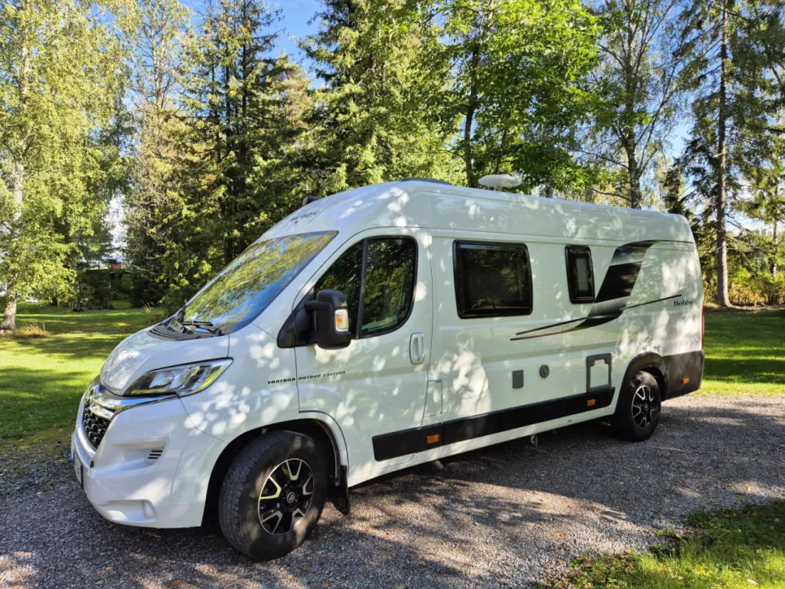 Visa originaltextDenna nya robusta husbil är smidig, ekonomisk och bekväm att köra. Den är registrerad för 4 personer, men sovplatserna är optimalt anpassade för två vuxna. Bilen har automatlåda, modern dieselvärme och är energieffektiv med solpanelsystem/effektivt batteri. Den kraftfulla 180 hk motorn ger en bra kick på motorvägar eller brantare bergsvägar. Med tanke på sin kompakta storlek är bilen omfattande utrustad och till exempel har köket allt du behöver för matlagning på vägen.