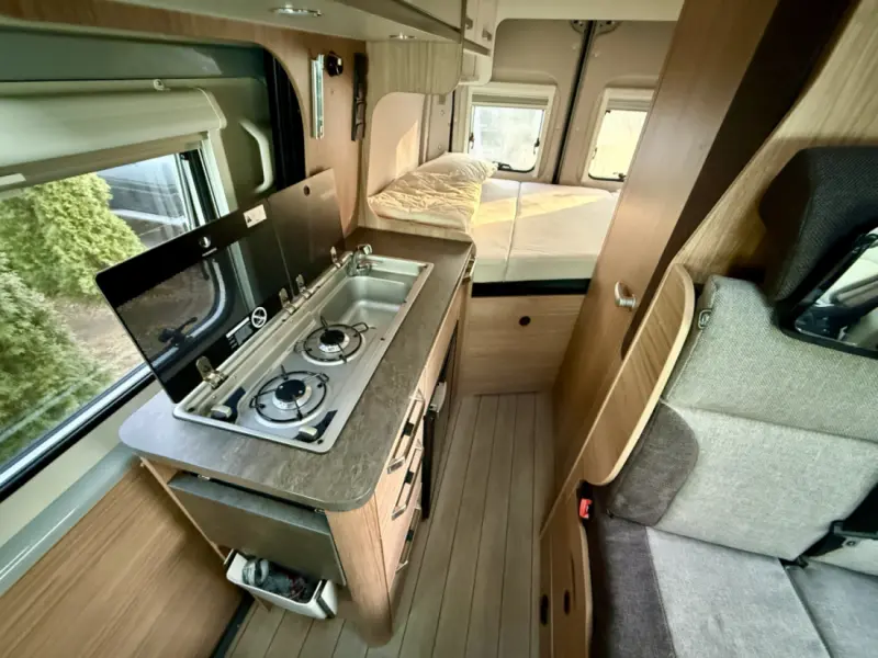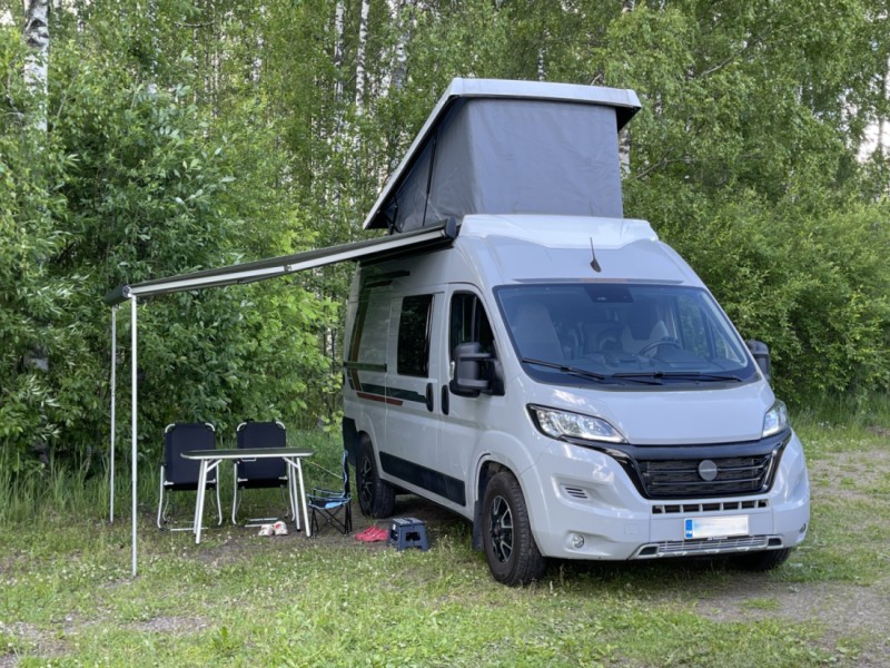 Visa originaltextEn trevlig liten, topputrustad husbil. Den är bara 5,4 m lång, men har plats för fyra!