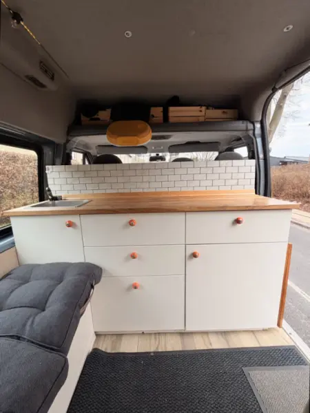 Visa originaltextVacker husbil, så mysig inuti, du kan förvärma vardagsrummet med timer, solcellsdriven kyl, USB-uttag och belysning, ultratyst luftfläkt, insug och utlopp, LCD-skärm med GPS (CarPlay Android etc). Köksdiskbänk, portabel toalett, gasspis, kylskåp, flyttbar högtalare, mysig belysning, förvaringsskåp och 5 lådor ovanför hytten, till och med plats för återvinningskärl, solsegel, hängmatta, 2 utomhusstolar och bord finns. Megabekväm madrass, för att vakna upp till ditt nya äventyr. Dolt skjutbart träbord för de 2 kökssätena inuti, dörrar öppna, frukost utomhus med vilken utsikt du än önskar. Den heter "WuVan"