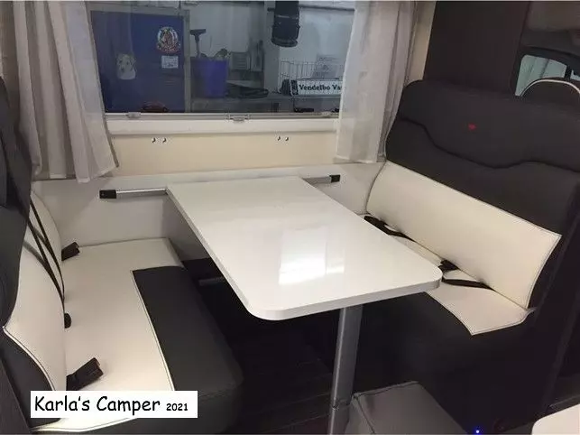 Visa originaltextEn riktigt fin rökfri familjebil som kan köras med vanligt B-körkort. Den kan naturligtvis även användas av mindre familjer som vill ha möjligheten att bjuda med resten av familjen på en resa. Här kan alla sitta fastspända för resan och de 2 sittgrupperna ger gott om möjligheter till sysselsättning på resan. Kojplatserna längst bak är bra för de mindre barnen och även för de största finns det hela 2,15 m längd att sova på i kojer och en dubbelsäng. Vi har köpt den här bilen med extrautrustning: 130 hk motor med automatlåda, farthållare, solcellssystem, Backkamera, Plisségardiner i förarhytten, överdrag över handfatet, Eco-läderklädsel på soffor, 12V takfläkt, Euro VI-motor, KÖRKLAR VIKT 2907 kg (Minimum), TOTALVIKT MAX 3500 kg