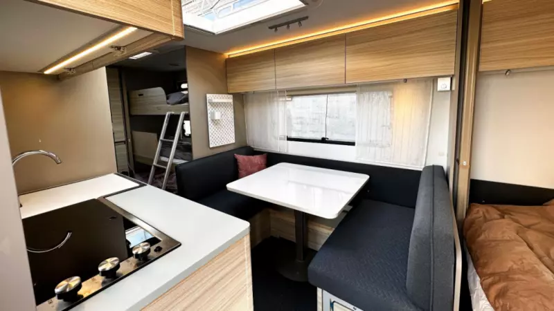 Översätt med Google TranslateKan leveres i hele DK + EU mod ekstra betaling. Er fleksibel med Indcheck og Aflevering Nyt stort oppustligt fortelt 7 sovepladser (5 af dem er faste og der er kun sengetøj/dyner/puder til 5) Truma (Varme med enten gas eller strøm) Mover ATC (Stabilisator ved slinger) Mikrobølgeovn GFK-Tag (Sikkert mod hagl) Køleskab + Fryser 150L Elevation i dobbeltseng (mekanisk) 32" Fladskærm WiFi Router Google Chromecast 4K