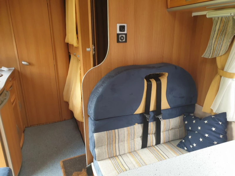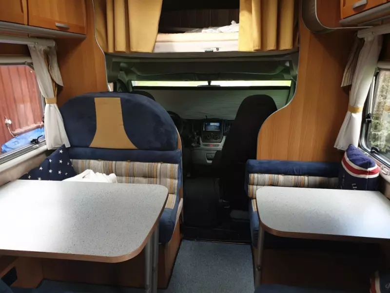 Bara resor inom Sverige, Danmark, Norge och Finland är tillåtna. Inorentiv AB har ett biluthyrningstillstånd utfärdat av Transportstyrelsen. Rymlig husbil med 6 bältade sittplatser och 7 sovplatser (varav en kortare sovplats som är 156 cm lång). En barnfamilj på upp till 5 personer kan använda stora matbordet och soffgruppen dygnet runt. Om man är fler än 5 personer fäller man ner stora matbordet som tillsammans med soffgruppen blir en säng som är 185 cm lång och 125 cm bred (se bilder). Nytt kompressorkylskåp 2026. Eftermonterad 200W solpanel och 165Ah litiumbatteri som minskar behovet av kostsamma ställplatser med 230V-anslutning och möjliggör vildmarkscamping. Denna video visar planlösningen (för en annan husbil av samma tillverkare och fordonsmodell): https://www.youtube.com/watch?v=8QnUrdM27_A