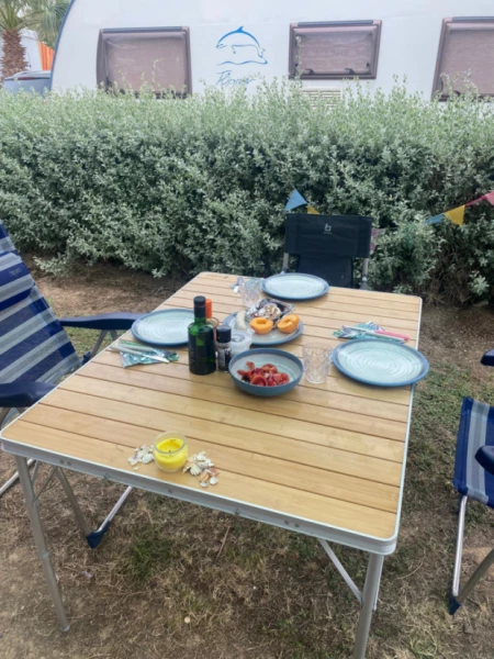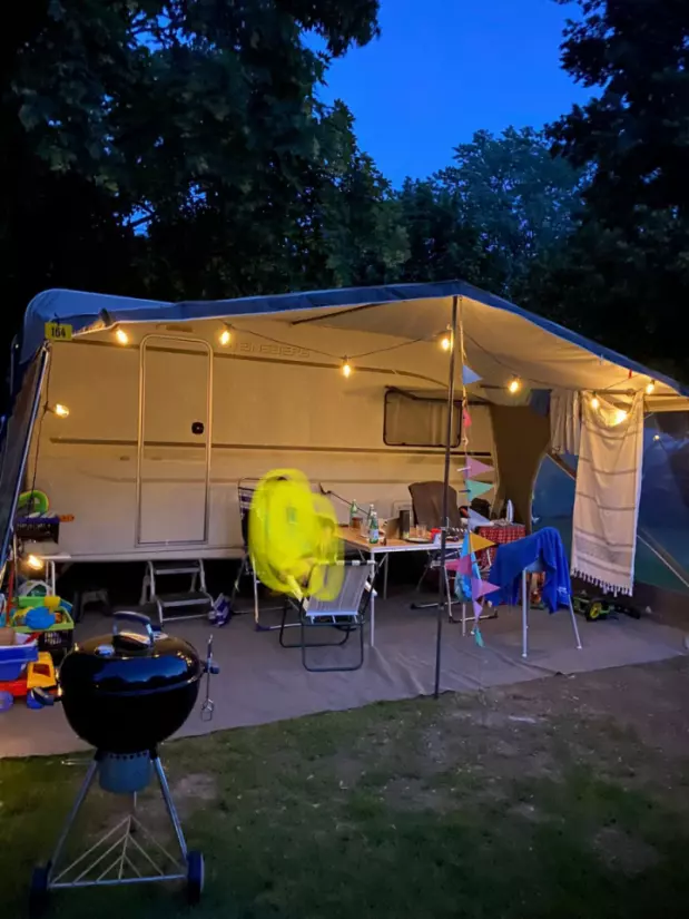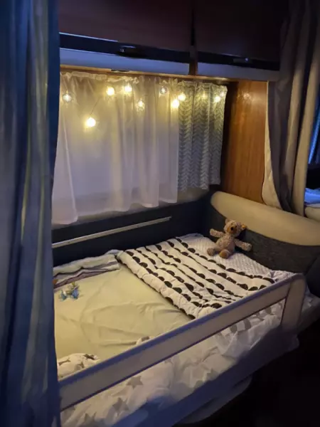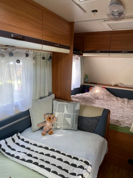 Näytä alkuperäinen tekstiAsuntovaunu, jossa on parivuode ja yksi sänky. Yhden hengen sänky sopii lapselle. Yhden hengen sänky voidaan muuntaa neljän hengen penkiksi pöydällä. Asuntovaunu on varustettu astioilla, paistinpannuilla, sähköliedellä, jääkaapilla, markiisilla jne. Sopii kesälomalle. Lämmitys toimii, mutta ei aina luotettavasti. Vetoaisan kuormauskapasiteetti: 100 kg. Mukana on myös täysin suljettu markiisi. Asuntovaunuun on asennettu vetoauton sivupeilit. Varasto: Keittiö: Housusetti Lautaset Lasit Kupit Ruokailuvälineet Ulkoalue: Markiisi Pohjakerros Ruokapöytä 2 sivupöytää Sähköliesi 2 ruokapöydän tuolia 2 lepotuolia 2 jalanjatketta 2 varjoverkkoa Hiiligrilli Grillauspihdit Teline 2 aurinkovarjoa 1 aurinkovarjon jalusta 2 hiekkapohjaa 1 retkipyörä Muuta: Lapsen bodyboard Syöttötuoli iPad-teline sängyssä Sähköt: Suuri jatkojohto Jatkojohto Erilaisia jatkojohtoja 400V liitäntäkaapeli Ei sisälly: Kaasupullot Liinavaatteet Vaatteiden kuivausteline