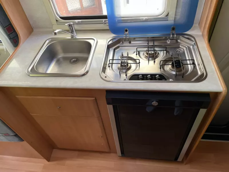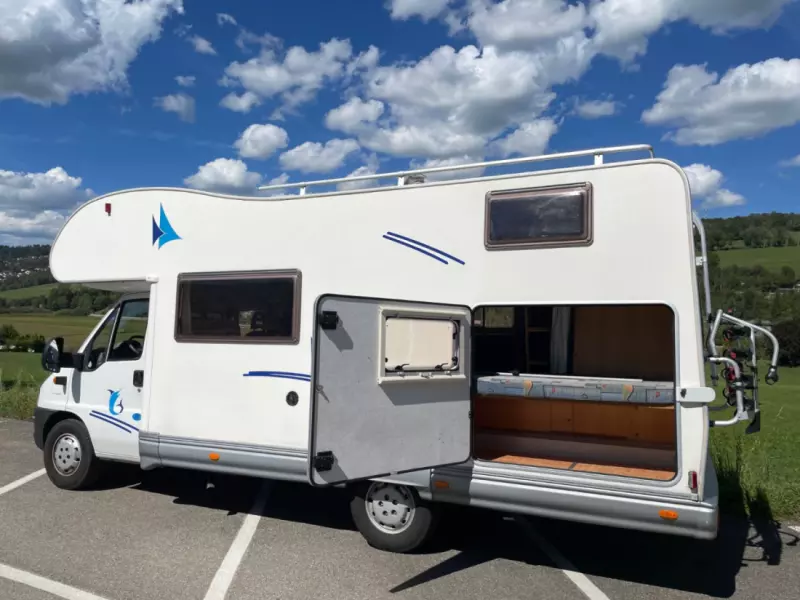 Näytä alkuperäinen tekstiTilava 6-paikkainen perhematkailuauto (maantie + nukkumistila). Yksi parivuode sälepohjalla ylähytin alueella (140 x 210 cm), kaksi kerrossänkyä takana (70 x 190 cm) turvaverkoilla ja kaksi lisävuodepaikkaa muuttamalla ruokailuryhmä. Liinavaatteet (lakanat, peitot ja tyynyt) sisältyvät hintaan. Keittiövälineet ja astiat 6 hengelle. Jääkaappi (uusittu vuonna 2022) pakastinlokerolla, toimii 12V/230V/kaasulla. 3-liekkinen kaasuliesi. Nespresso-keitin ja italialaistyylinen kahvinkeitin. Fondue-pannu ja -poltin. Kaasugrilli ulkokäyttöön. Kylpyhuone, jossa wc, pesuallas ja erillinen suihku. Kaasukeskuslämmitys ja lämmin vesi kaasukattilalla. 19-tuumainen televisio DVD-soittimella. Autoradio DAB-radiolla, CD-soitin, SD-korttipaikka, Bluetooth + Garmin Camper GPS peruutuskameralla. Aurinkopaneeli (energiariippumattomuus yötä varten leirintäalueiden ulkopuolella). Ulkovarusteet: retkipöytä ja -tuolit, 4,5 m markiisi LED-valaistuksella ja pohjakangas. Suuri säilytystila, johon pääsee myös ajoneuvon sisältä ja jota voi laajentaa nostamalla alakerran vuodetta. Polkupyöräteline neljälle pyörälle (2 isoa + 2 pientä), joiden enimmäispaino on 50 kg. Vain kesärenkaat.