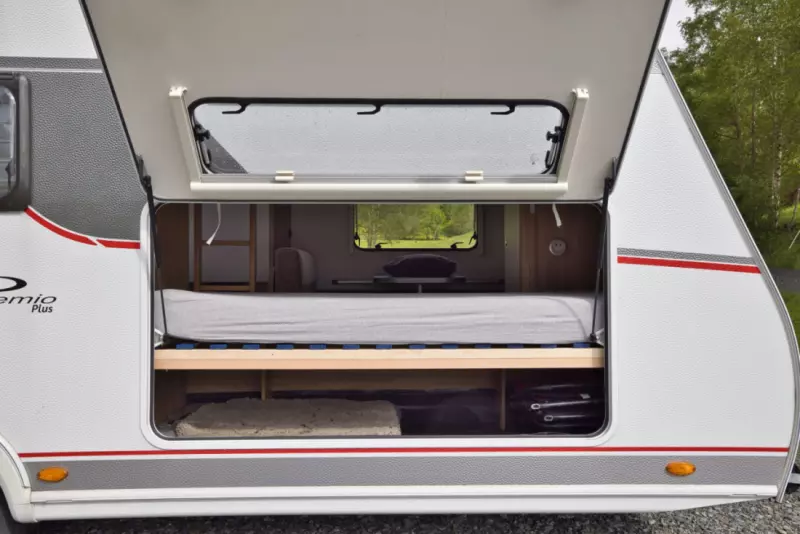 Näytä alkuperäinen tekstiBurstner Premio Plus 510 TK. Kaunis ja tilava asuntovaunu vuokrattavana. Täydellinen perheille. Asuntovaunu on rekisteröity 7 vuoteella. Vuodesohva voidaan muuntaa parisängyksi, yläpuolella on kahden hengen nosto- ja alavuode + kerrossänky takana ja hieman pienempi vuode takana, johon pieni sohvaryhmä voidaan muuntaa. Mukana on myös vetoaisaan kiinnitetty pyöräteline, jossa on tilaa kahdelle pyörälle. Halutessasi meillä on joitakin retkituoleja, jotka voidaan sisällyttää hintaan.