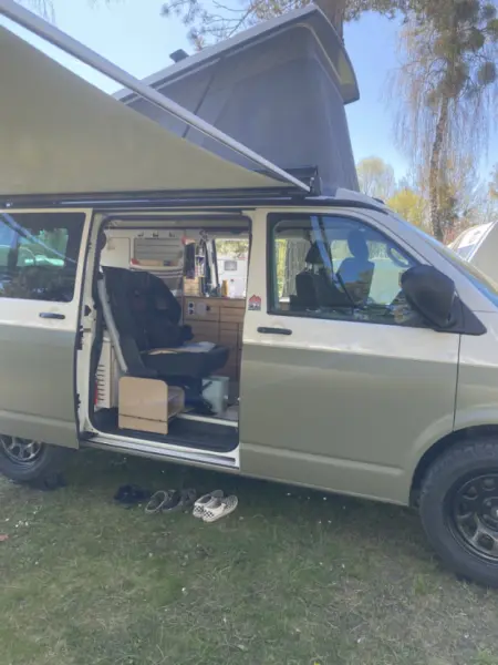 Käännä Google Translate - kääntäjälläVW Bus – Stilvoller Camper mit Panorama-Aufstelldach & Standheizung Erlebt unvergessliche Roadtrips mit unserem hochwertig ausgebauten VW Bus – perfekt für alle, die Freiheit lieben und dabei nicht auf Komfort und Design verzichten möchten. Der Innenausbau stammt von Two Stories und überzeugt mit viel Holz, warmem Ambiente und durchdachtem Raumkonzept. Hier trifft Funktionalität auf gemütliches Design. 🛏 Schlafkomfort für bis zu 4 Personen - Aufstelldach mit Lattenrost & großem Panoramafenster (2 Personen) - Unten ausziehbare Sitzbank mit Lattenrost (2 Personen) - Flexible Nutzung: Hintere Sitzbänke können auf Anfrage entfernt werden (3– 5 Sitzplätze möglich) 🍳 Küche & Outdoor-Genuss - Große Induktionsplatte - Zusätzliche mobile Gasplatte - Großer Kühlschrank - Komplettes Geschirr-Set - Bialetti Moka für perfekten Kaffee am Morgen - Waschbecken mit 10 Liter Wassertank + Abwassertank - zusätzlicher mobiler 10 Liter Wasserkanister - 2 Campingstühle & 1 Campingtisch - 1 Sonnenschirm - Solar-Lichterkette für gemütliche Abende 🚿 Komfort & Ausstattung - Mobile Dusche - Standheizung mit Belüftungsfunktion (ideal für Sommer & Winter) - Sichtschutzmatten für alle Fenster - Einbauschränke mit viel Stauraum - ausziehbare Schublade für zusätzlichen Stauraum - Hochwertiger Holz-Innenausbau mit gemütlicher Atmosphäre - Dachträger inkl. Leiter - Hängematte ✨ Ideal für Paare, Freunde oder Familien, die stilvoll reisen möchten – ob Wochenendtrip, Alpenüberquerung oder Sommerferien am Meer.