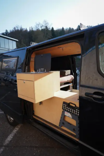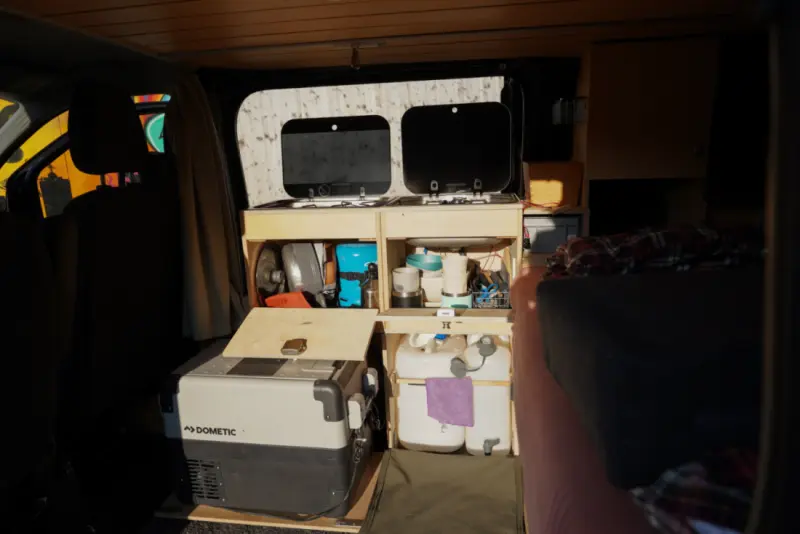 Keittiö ruoanlaittoon, sisällä tai ulkona. Juokseva vesi, mukava sänky ja parhaat näkymät takaluukusta.