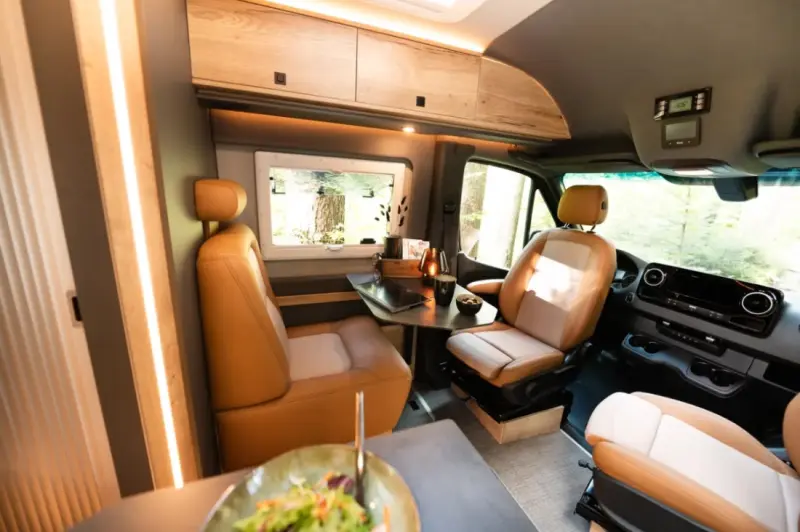 Näytä alkuperäinen tekstiAventuro on suunniteltu kahdelle hengelle 6-metriseen Sprinter-alustaan perustuvaksi ajoneuvoksi. Vakiovarusteisiin kuuluvat neliveto, 9G-Tronic-vaihteisto, etuilmastointi, litiumakku, diesellämmitin, turvatyynyt, ABS/ASP, ASR, ESP, sumuvalot, LED-ajovalot, vakionopeudensäädin, kuolleen kulman ja sivutuuliavustin, sade- ja valotunnistin, hyönteisverho, 93 litran polttoainesäiliö, pimennysverhot, sähkötoiminen askelma, nahkainen monitoimiohjauspyörä, osittainen nahkaverhoilu, MBUX 10" multimediajärjestelmä ja paljon muuta. Muita ominaisuuksia: Suljetun huokosen eristysmateriaalit, viisi Seitz S4 -kehysikkunaa, 15 mm vanerinen kalusterakenne, erittäin luja HPL-pöytä ja työtasot sekä CPL-yläkaappien ovet takaavat korkean laatutason.