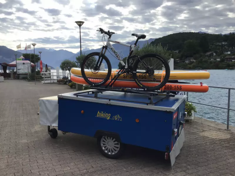 Utskiftbare systemer: takboks + 2 sykkelstativer / 4 sykkelstativer / 2 sykkelstativer + 2 surfebrett, avhengig av kundens behov!