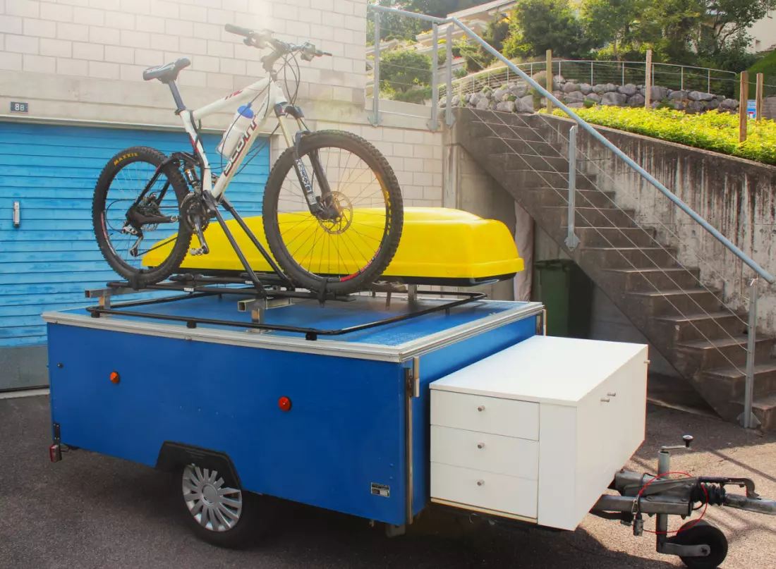 Med min klassiske campingvogn har du alt du trenger i en kompakt pakke: seng, kjøkken, oppbevaringsplass og sykkelstativ. Den kan taues med vanlig førerkort.