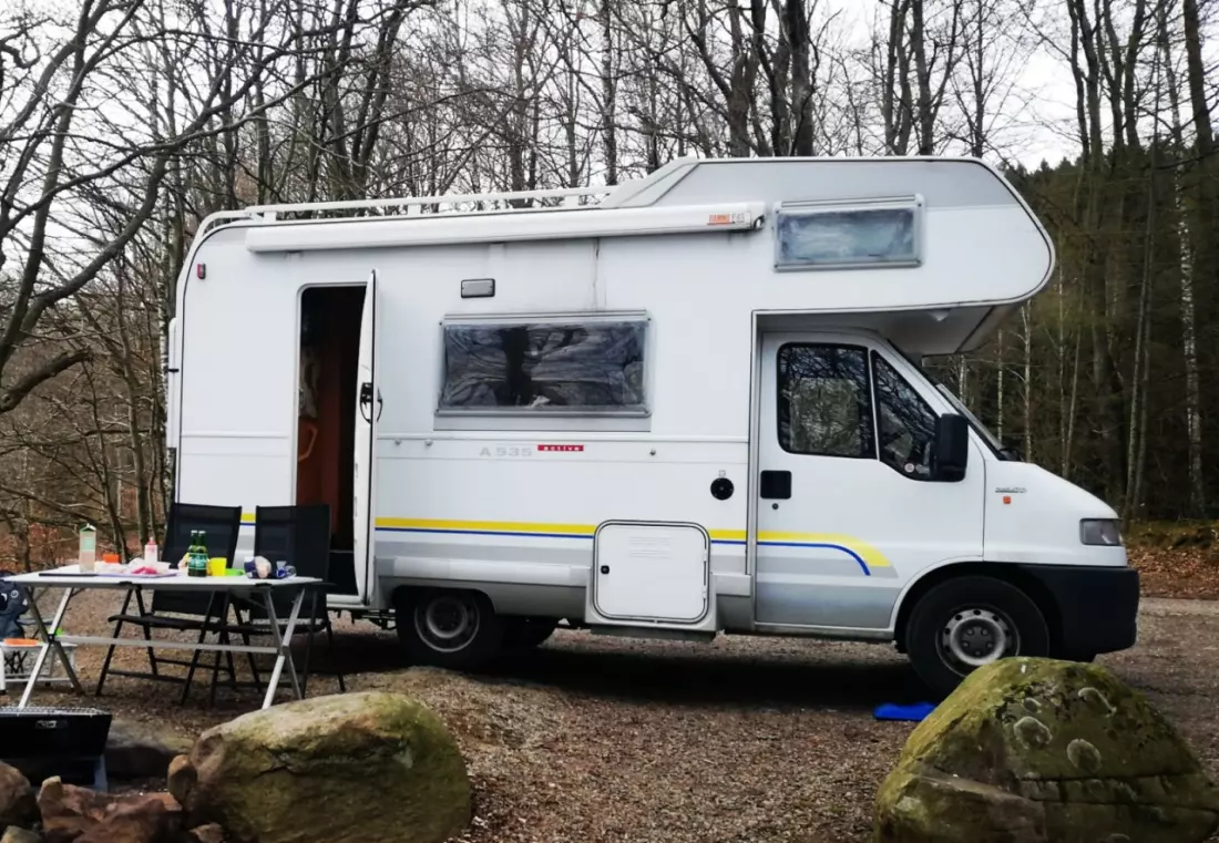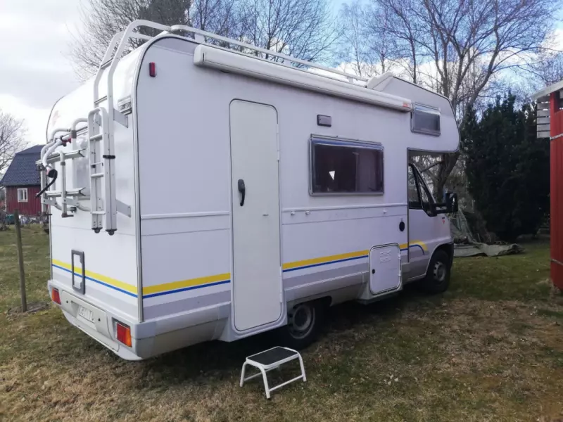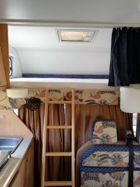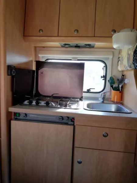 Se originaltekstenEn liten campingvogn med alle fasiliteter. Under 6 m lang, noe som gjør den enkel å parkere, og det er lave båt- og broavgifter. Det er 5–6 soveplasser og 6 seter med belte. En sovealkove over førerhuset på 140 cm, et barnerom med køyesenger, og det er mulig å legge ned spiseplassen som kan brukes av 1–2 personer. Litt avhengig av hvor mye plass du trenger. Alle senger unntatt sovealkoven er ganske korte. Jeg er 167 cm og har plass til alle sengene. Sengene er perfekte for to voksne og 2–4 barn. Kjøkkenet er utstyrt med 3 gassbrennere, en vask og et kjøleskap med et lite fryseboks. Kjøkkenutstyr som servise, gryter og kaffetrakter er inkludert. Kjøleskapet går på strøm eller gass og 12 V under kjøring. Campingvognen og varmtvannet varmes opp med gass. Hvis du ikke vil bruke dusjen, kan den brukes som oppbevaring for å henge opp klær. Utemøbler i form av et bord og fire stoler samt en sammenleggbar grill er inkludert. Bobilen leveres og returneres med full tank drivstoff.