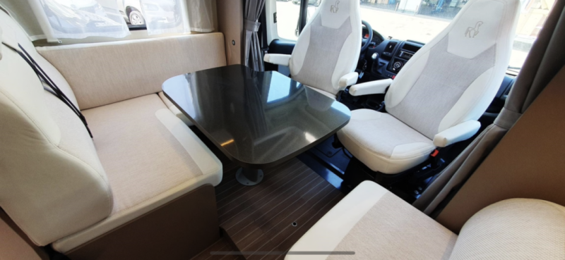I sittegruppen er alle setene dekket med et brunt beskyttelsestrekk.