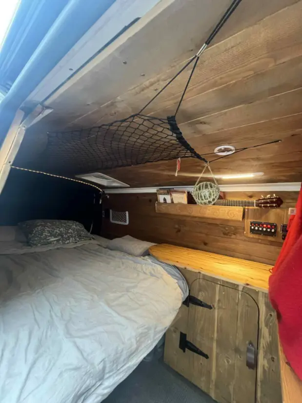 Har bygd om bilen selv så det er ingen fancy bobil. Men det funker perfekt for små utflukter der man vil ha en seng i naturen. Dieselvarmer , 230V uttak, 100amp batteri som er lagt med DCDC lader. Det er også usb uttak pluss vifte i taket som suger godt. Ta kontakt om du har flere spørsmål!
