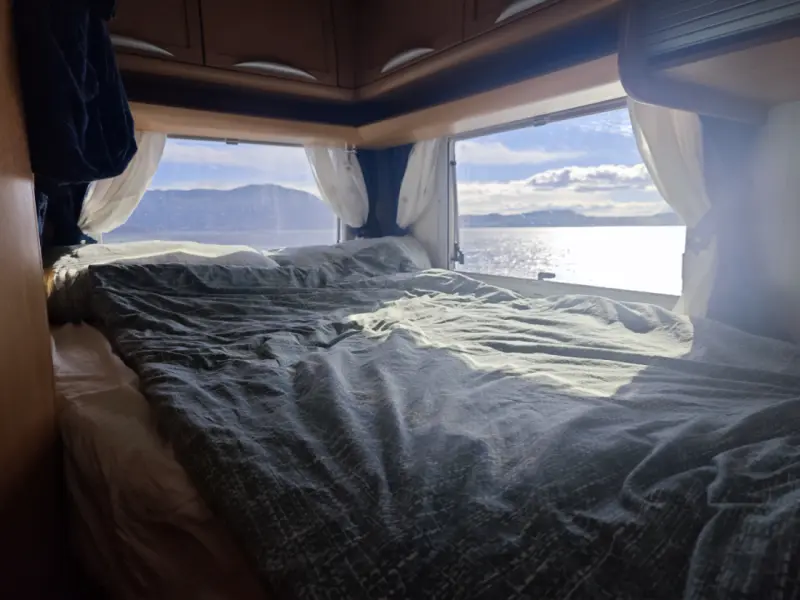 Se originaltekstenPrisen inkluderer levering til Trondheim lufthavn direkte ved ankomst. Vi kan hente deg, eller du kan hente bobilen på følgende steder i Norge: 7790 Malm (hovedkvarter) (Privat parkering for bilen din for 90 kroner per natt) 7713 Steinkjer (togstasjon) 7500 Stjørdal (Trondheim lufthavn) 7010 Trondheim (sentralstasjon) For dette må du informere oss under bestillingsprosessen. Så gir vi deg et tilbud. Det er et perfekt valg for en voksen og ett barn eller et lite barn. Det er en seng på 140 cm bak, og i midten er det en seng på ca. 105 cm. Ta kontakt hvis du har spørsmål. Spesielt for ekstra utstyr (som fiske, ekstra kjøleboks 12/230V ned til -21°C eller noe annet).