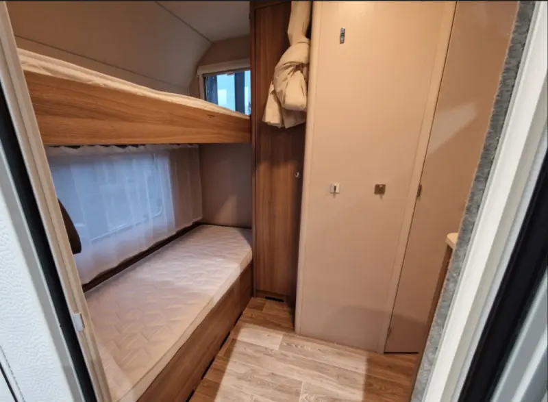 Se originaltekstenDenne er perfekt for familier med små barn da vi har netting foran køyeseng. Vi har selv barn på 1,5 + 4 år som elsker denne vognen. ☺️