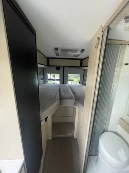 Se originaltekstenDen relativt nye campingvognen er smidig, økonomisk og komfortabel å kjøre. Registrert for 4, men soveplassene er optimalt for to voksne og ett barn. Bilen har en 140 hk motor, automatgir, klimaanlegg i bodelen og annet omfattende utstyr. Med tanke på den kompakte størrelsen har bilen maksimert bokomfort, og for eksempel har kjøkkenet alt du trenger for matlaging på veien.