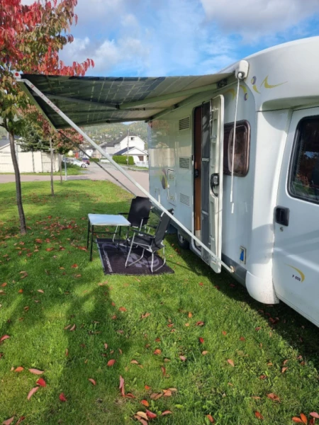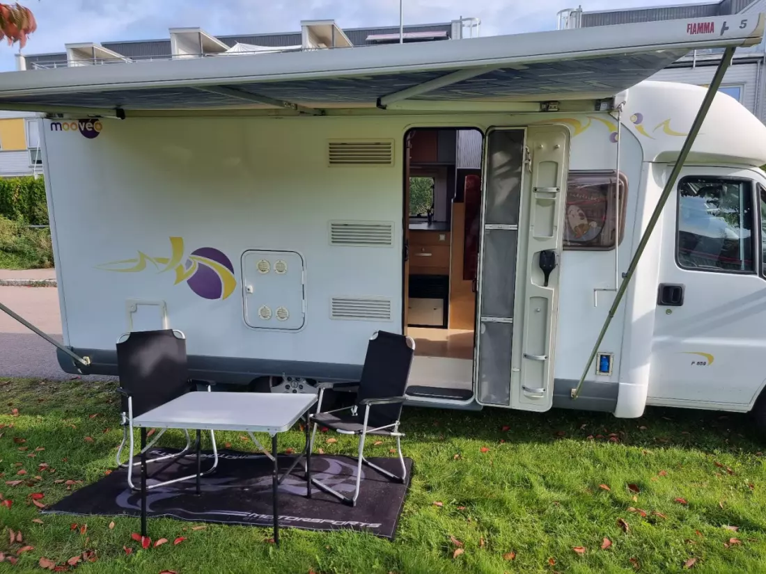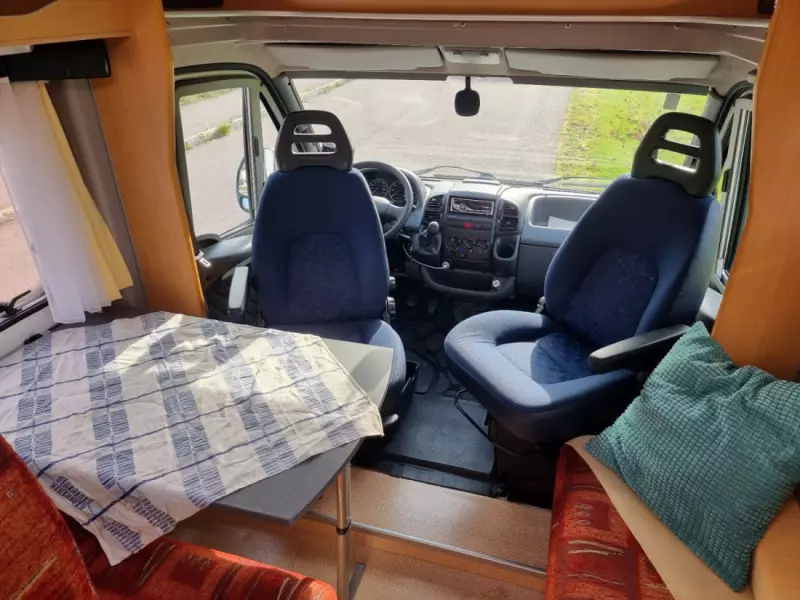 Se originaltekstenBilen har alt av kopper og kar til og lage gode frokoster og sene middager. Bilen er registrert for 4 ved at man kan legge ned bordet for og lage en ekstra seng. Men er best for bare 2 personer som ønsker seg en fin tur alene. Det følger med 1 flaske gass. Vanntank fylt opp og varmtvannsbereder påslått. Anbefaler og fylle opp tanken regelmessig for å unngå romt for varmtvann.