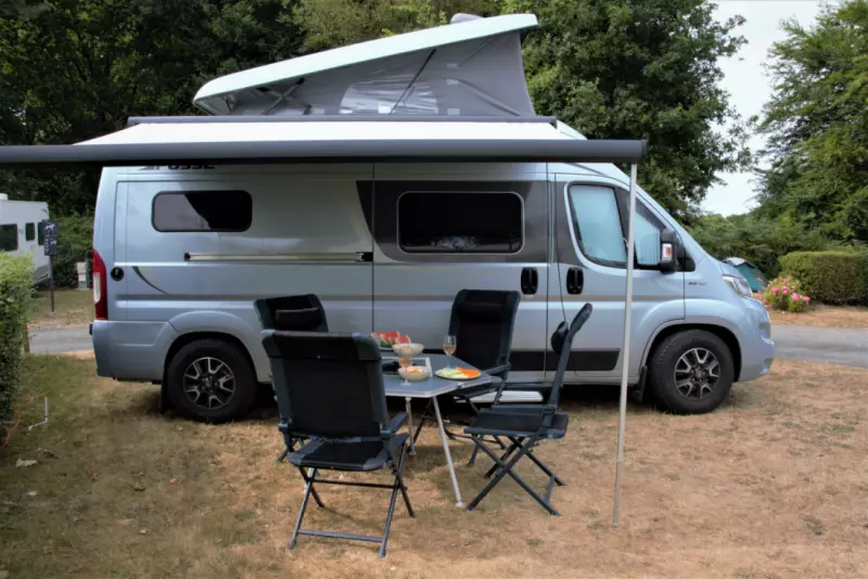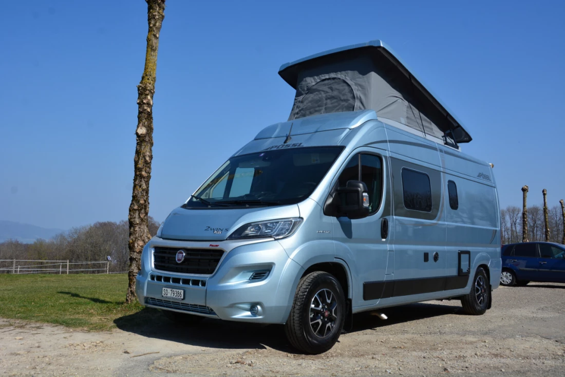 Visa originaltextVår husbil är särskilt lämplig för familjer och alla resentusiaster. Kompakt på utsidan, men rymlig på insidan med gott om förvaring. Det väldesignade köket med sin stora arbetsyta erbjuder stor bekvämlighet, inklusive ett kylskåp med frysfack. Höjtaket är en höjdpunkt; även om det "bara" är två vuxna som reser är det himmelskt att sova i det luftiga hävtaket. Fiat Ducato är mycket bekväm att köra med sin automatlåda och kraftfulla motor. Många förarassistanssystem hjälper till med körning och manövrering. Husbilen är fullt utrustad med köksutrustning, fyra bekväma stolar och ett bord. Cykelstället som finns som tillval är också lämpligt för elcyklar.