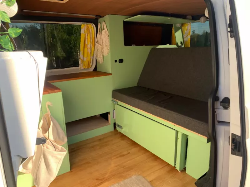 Översätt med Google TranslateKoselig og lettkjørt bil som passer perfekt for 2 på eventyr. Det er godt med lagringsplass i skuffene under sengen og i skapet langs siden. Sengen kan slås inn til sofa for å få bedre plass når man trenger det. (Seng 120x180 utslått) Bakdøren fungerer som fint tak over kjøkkenskuffen. Kjøleboks, el.takvifte og lys + usbladere går på solceller. Stort batteri som holder flere dager uten sol.